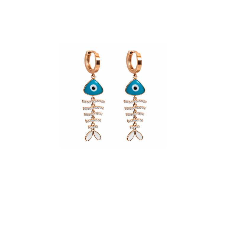 Turkuaz Taşlı Pırlanta Detaylı Rose Gold Uzun Küpe