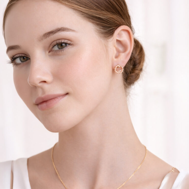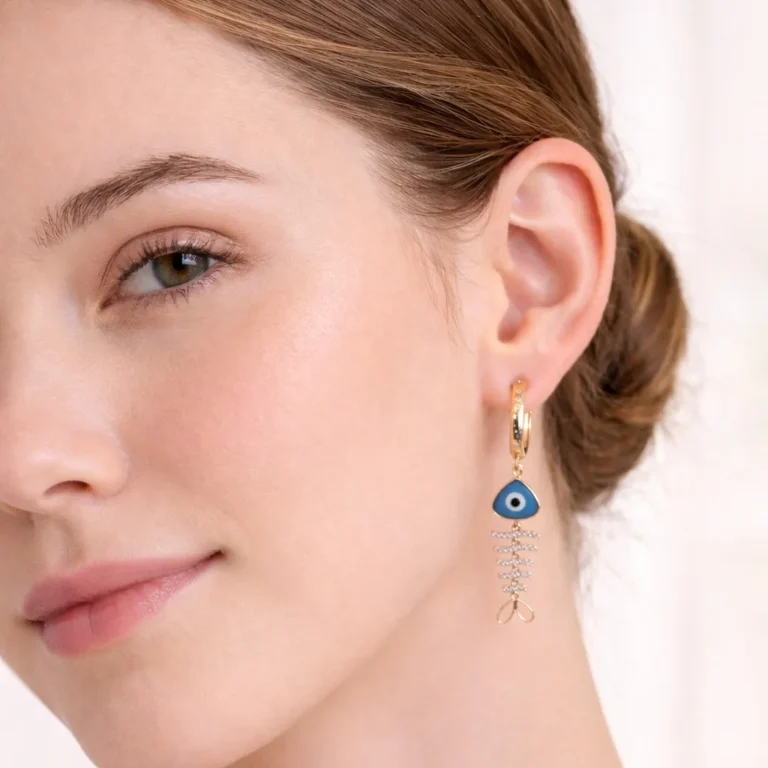 Mineli Nazar Göz Küpe – Altın Çerçeveli Minimal Göz Küpe