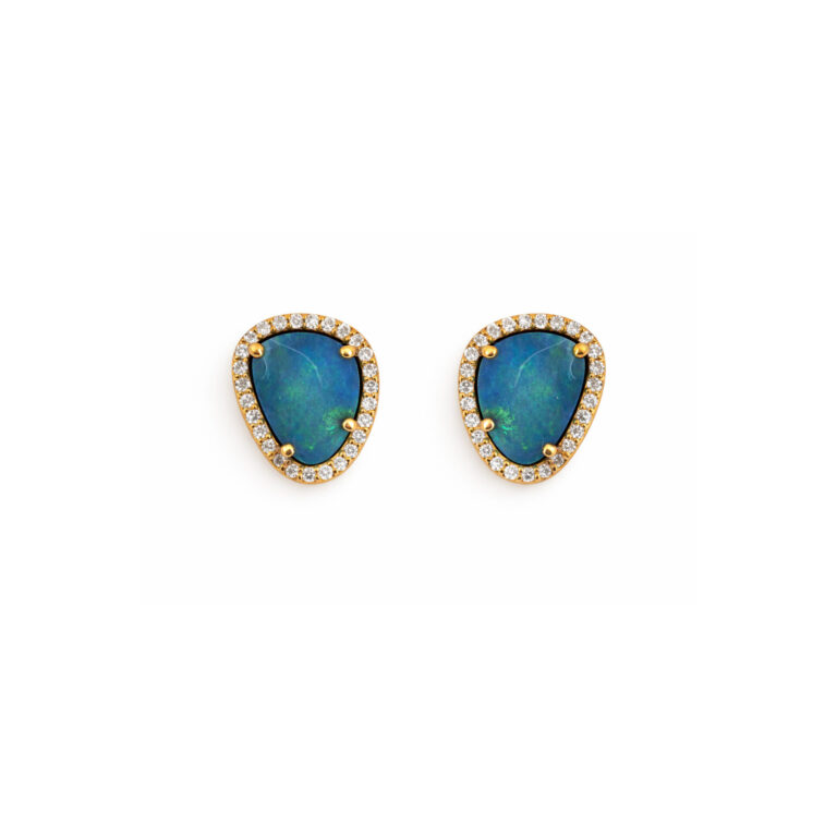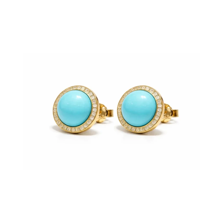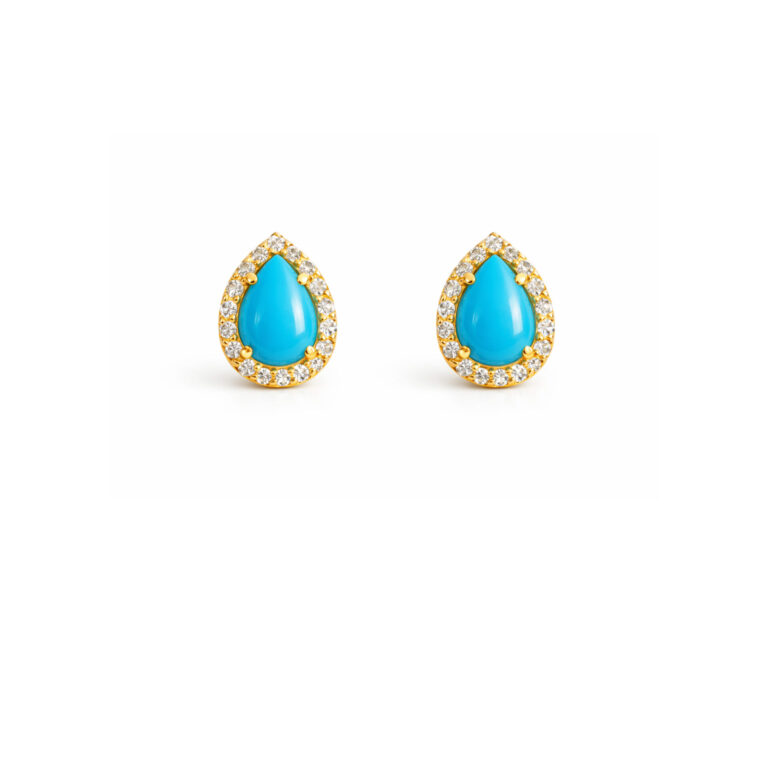 Arizona Firuze Damla Kesim Pırlanta Çerçeveli Altın Küpe