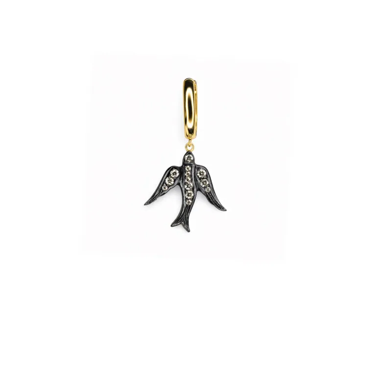 Kırlangıç Figürlü Pırlanta Taşlı Sallantılı Küpe