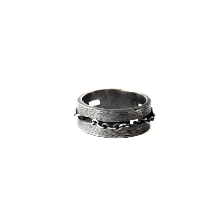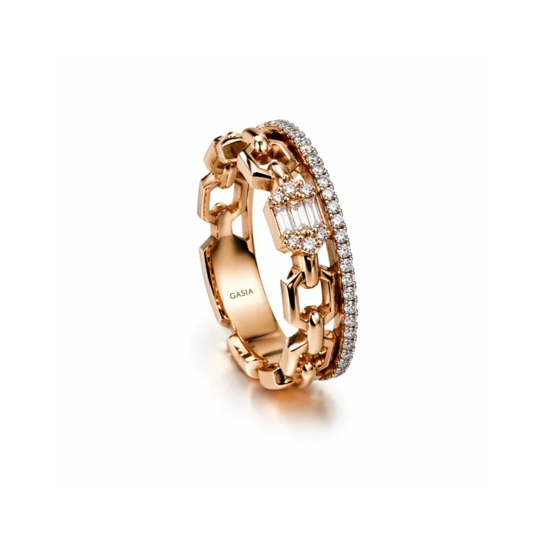 Baget Pırlanta Detaylı Zincir Form Altın Yüzük