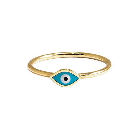 Nazar Boncuklu Pırlanta Detaylı Sarı Altın Yüzük