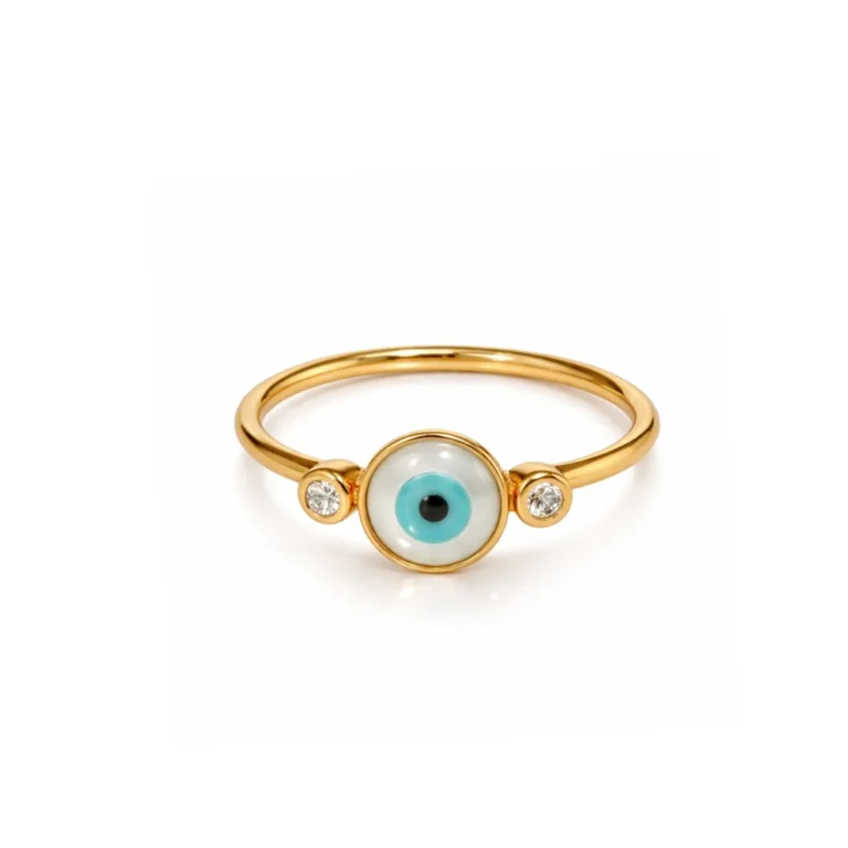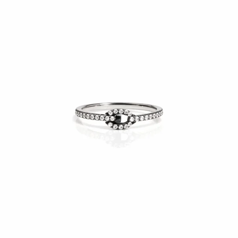 Nazar Boncuklu Pırlanta Detaylı Beyaz Altın Yüzük