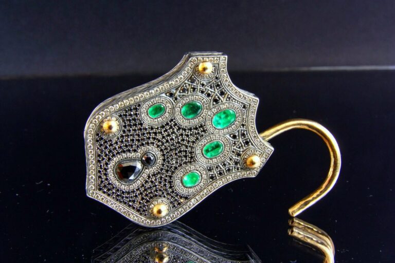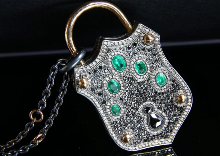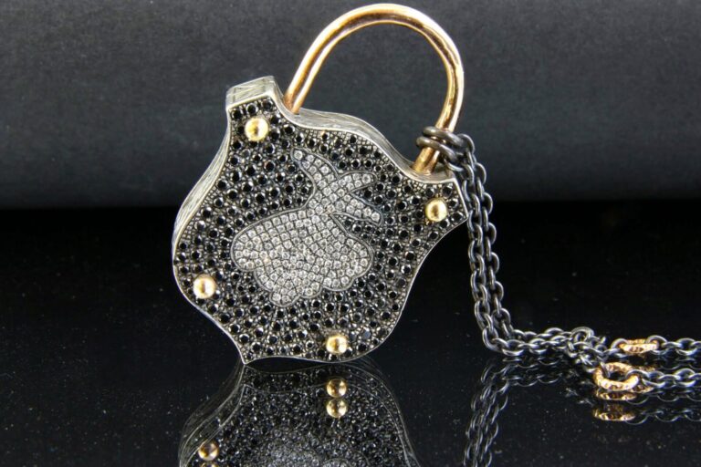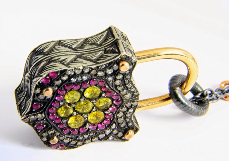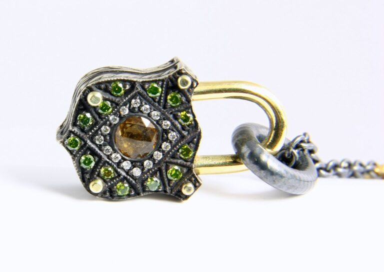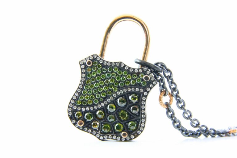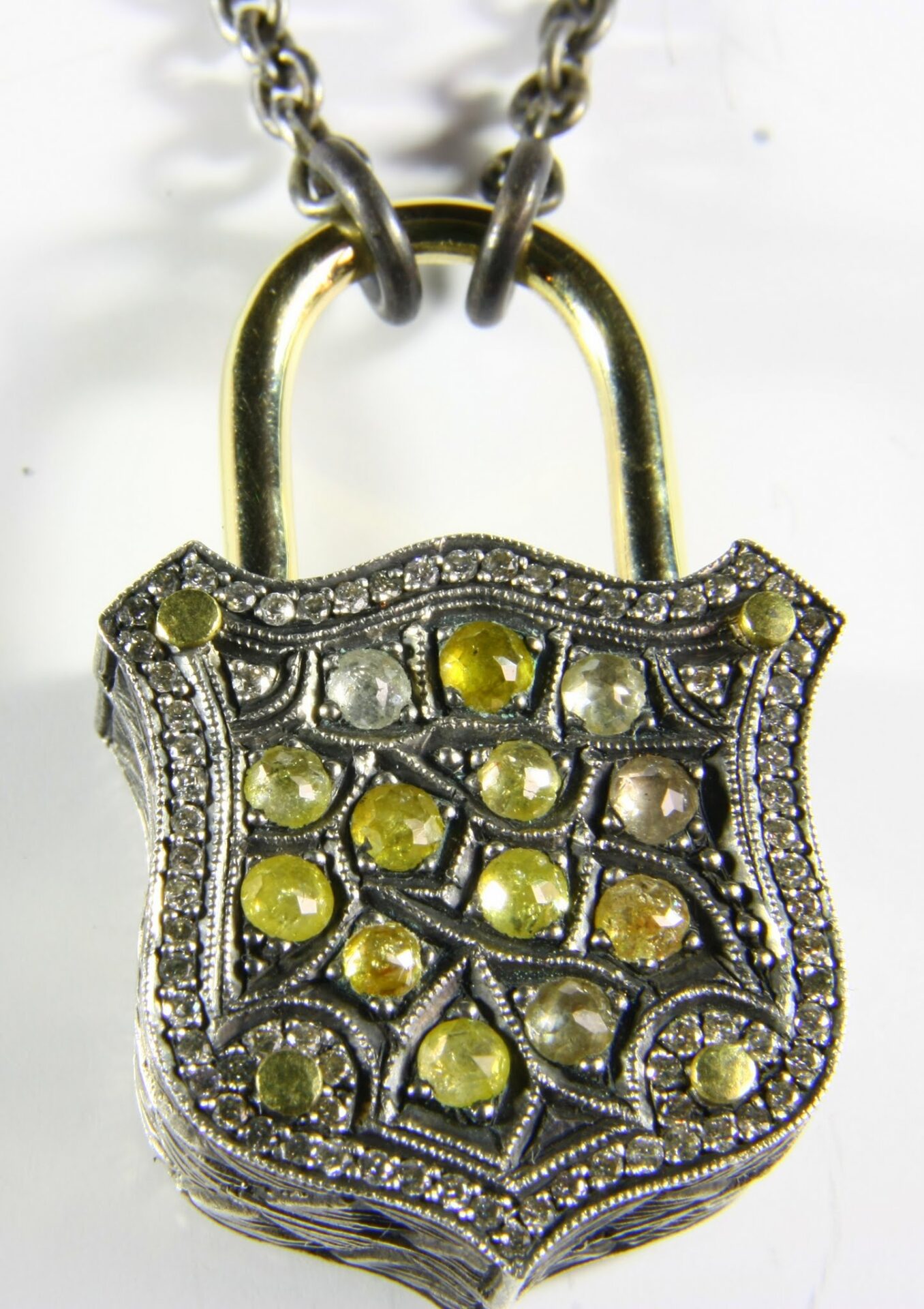 Renkli ve beyaz pırlantalı asma kilit kolye