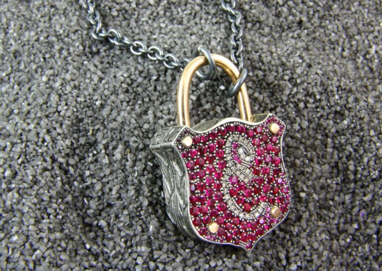 Siyah ve beyaz pırlantalı asma kilit kolye