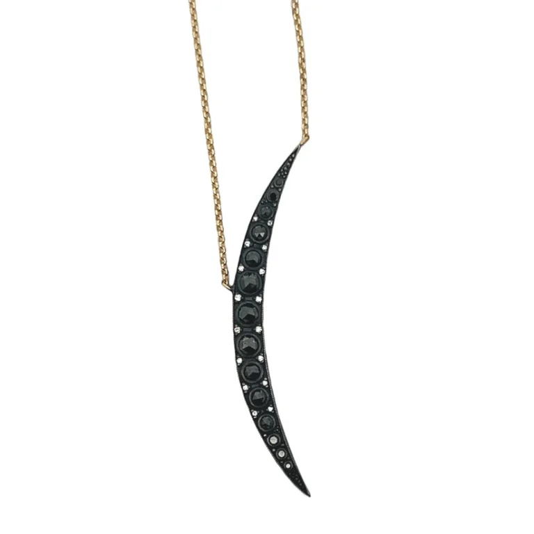 Miniature Feather Necklace on Gold Stripe with Diamonds