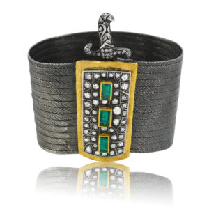 Hammered Oxidized Silver Bracelet with Gold Stripes