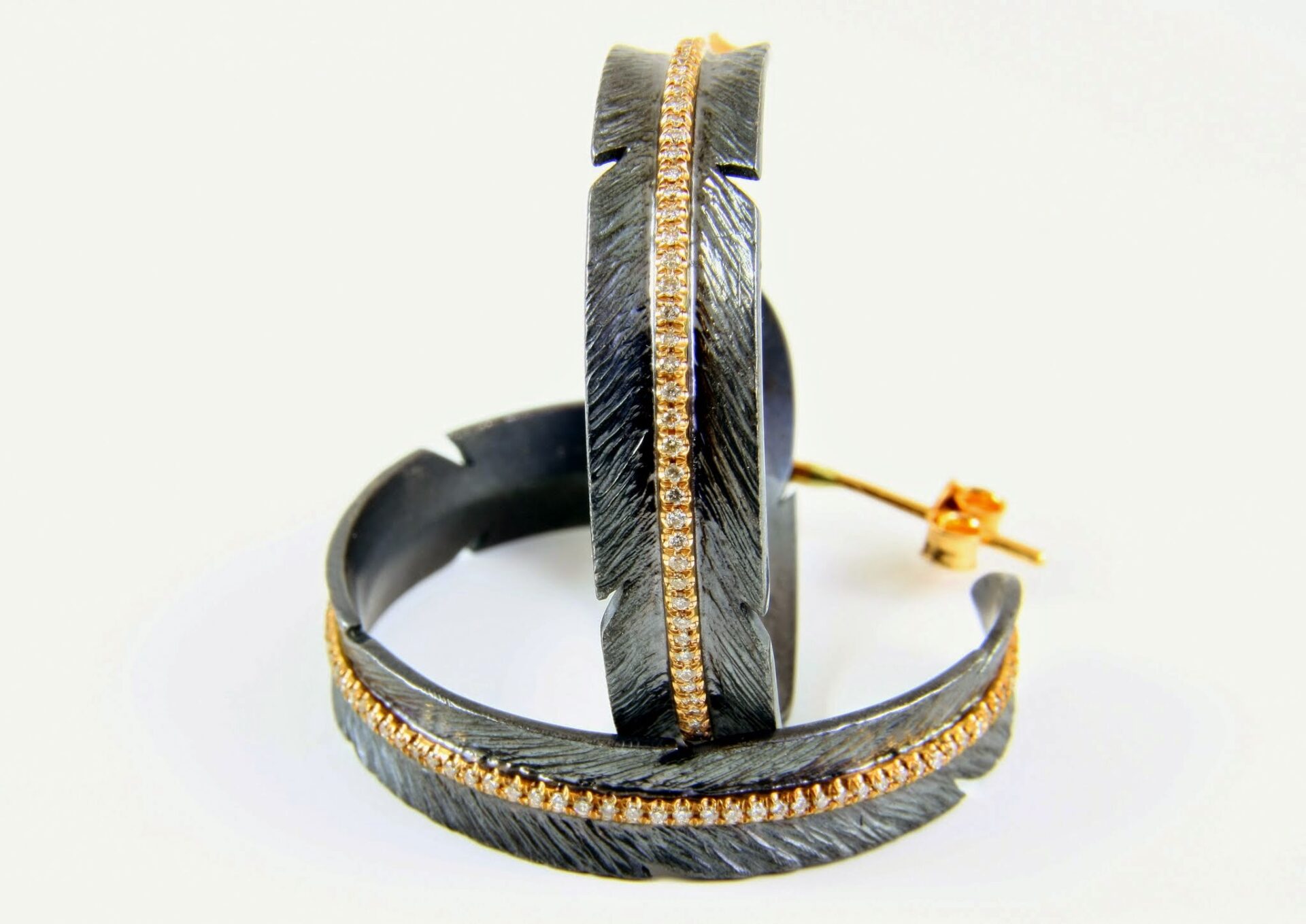 Minimal Branch Earring with 925 Oxidized Silver and Diamonds